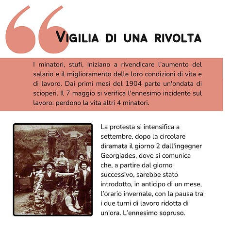 Tra le tante storie c'è quella di Giovanni Pilloni di Tramatza. Lui per quella miniera è morto, lui per i suoi compagni si è battuto. Lui è caduto sul campo di battaglia come un soldato. Ma non ha ricevuto nessuna medaglia, nessun riconoscimento. Il suo nome non compare nemmeno nella lapide commemorativa dell'eccidio di Buggerru.